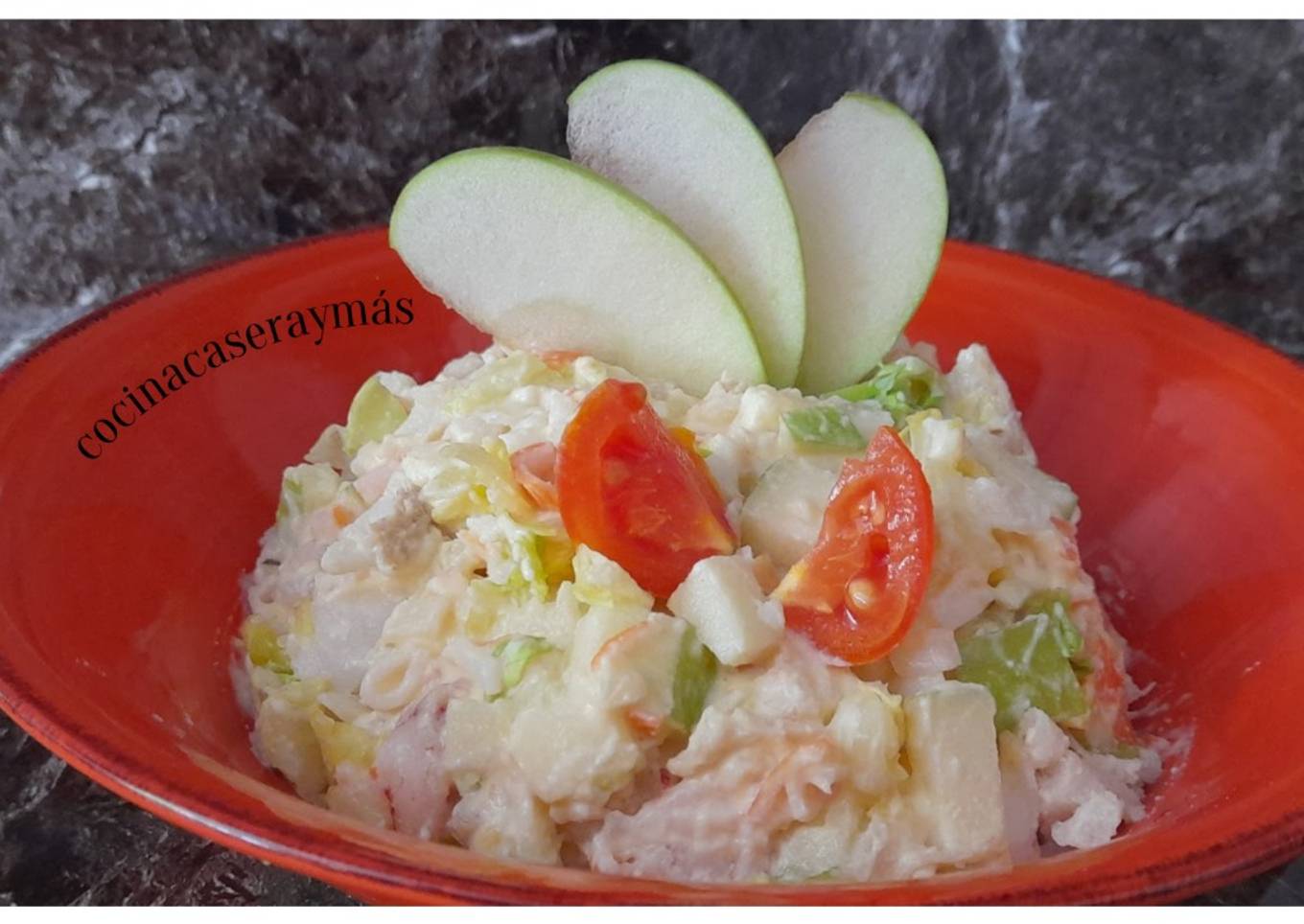 Hey everyone, I hope you are having an amazing day today. Today, I will show you a way to prepare a special dish, Ensaladilla de pescado y manzana -con falsa mahonesa-. One of my favorites. This time, I'm gonna make it a bit unique. This is gonna smell and look delicious.
