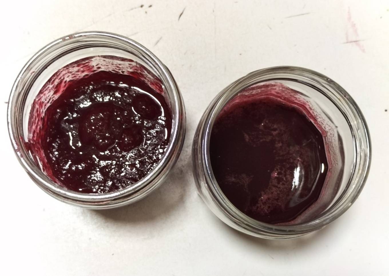 - Después de mucho trabajo sólo he conseguido llenar dos medios frascos. Mermelada sangrienta y sirope de fantasía, siniestra. El sirope tiene un sabor más concentrado y es también más dulce. La mermelada espesará después de un día en la nevera, entonces le añadimos unas cucharadas de sirope y removemos. Más, menos o ninguna, eso ya depende de cada cual.