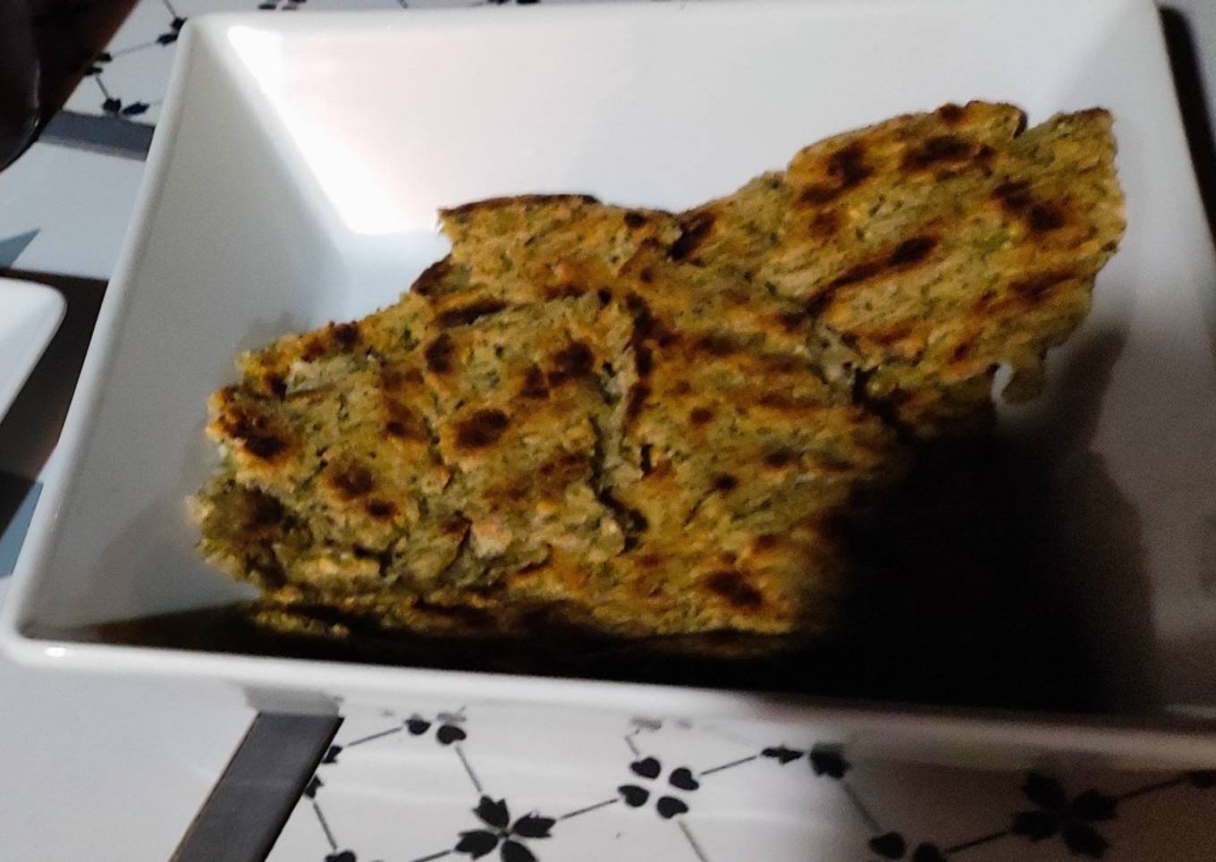 Es como la base de pizza pero la cocinè más tiempo para que quedara crujiente.